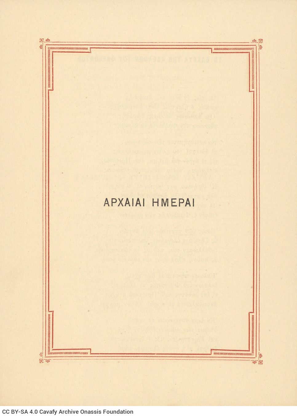 «Αρχαίαι Ημέραι»