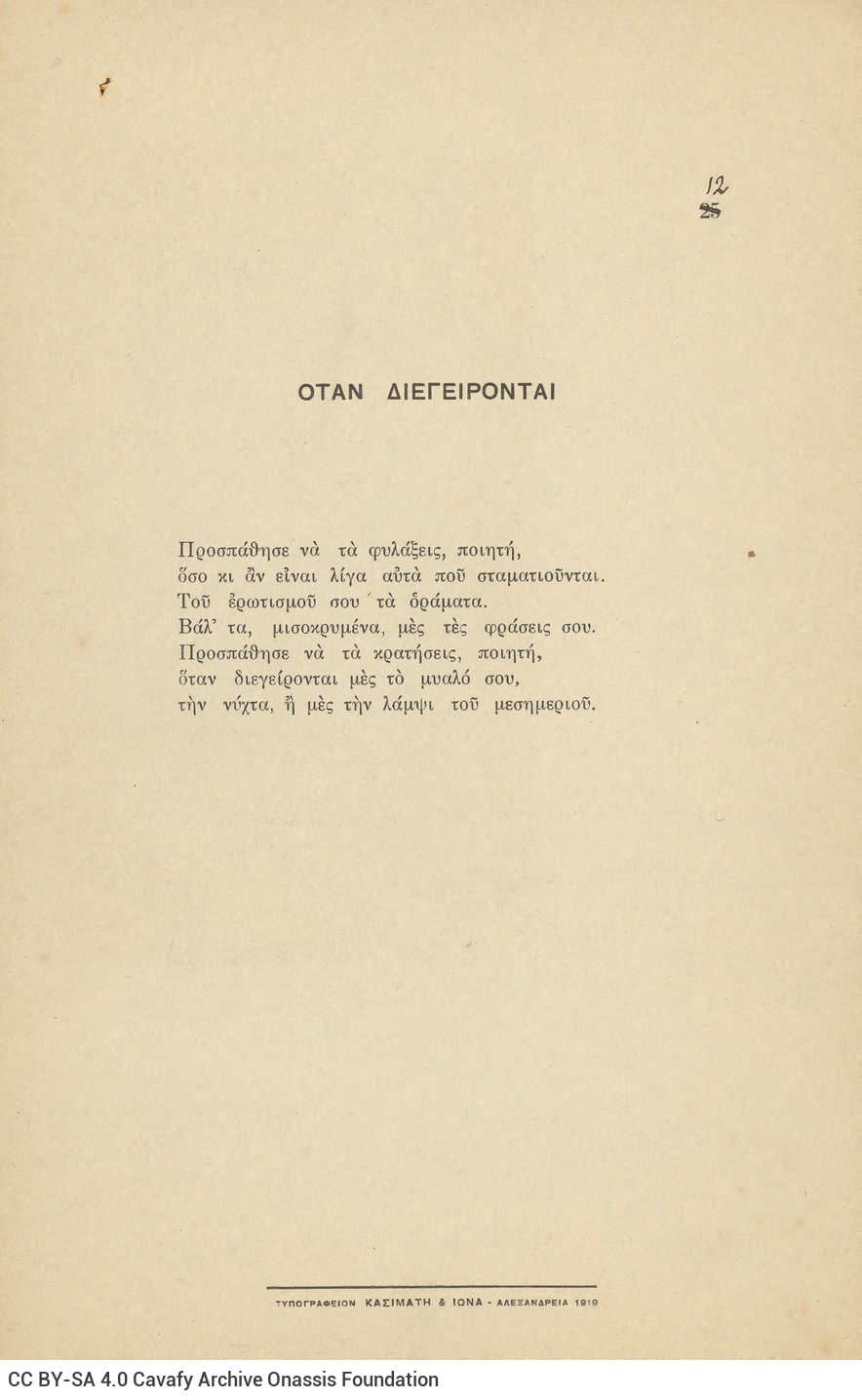 ΑΡΧΕΙΟ ΚΑΒΑΦΗ, Κ. Π.