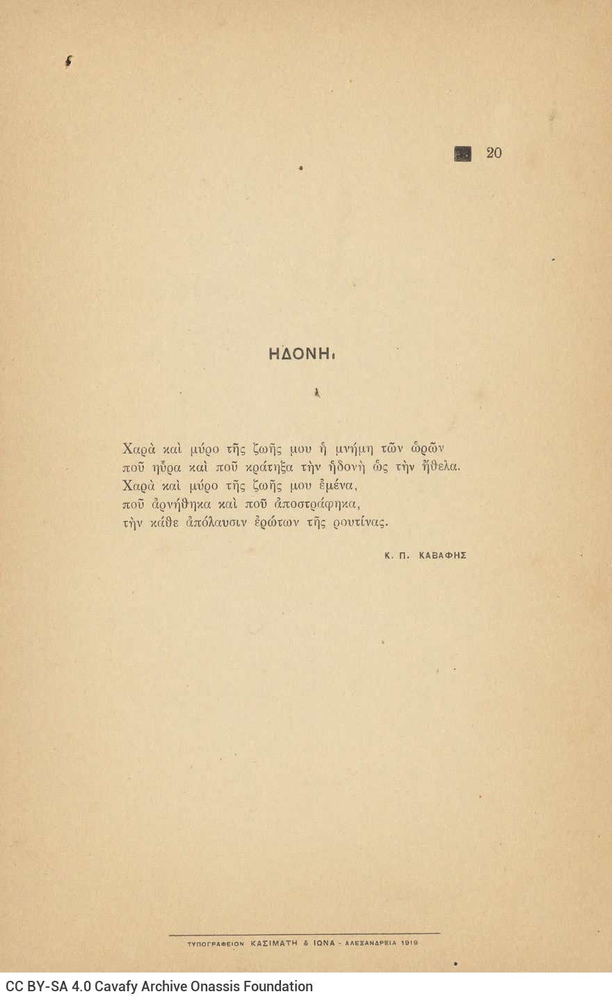CA - CAVAFY, C. P. FONDS