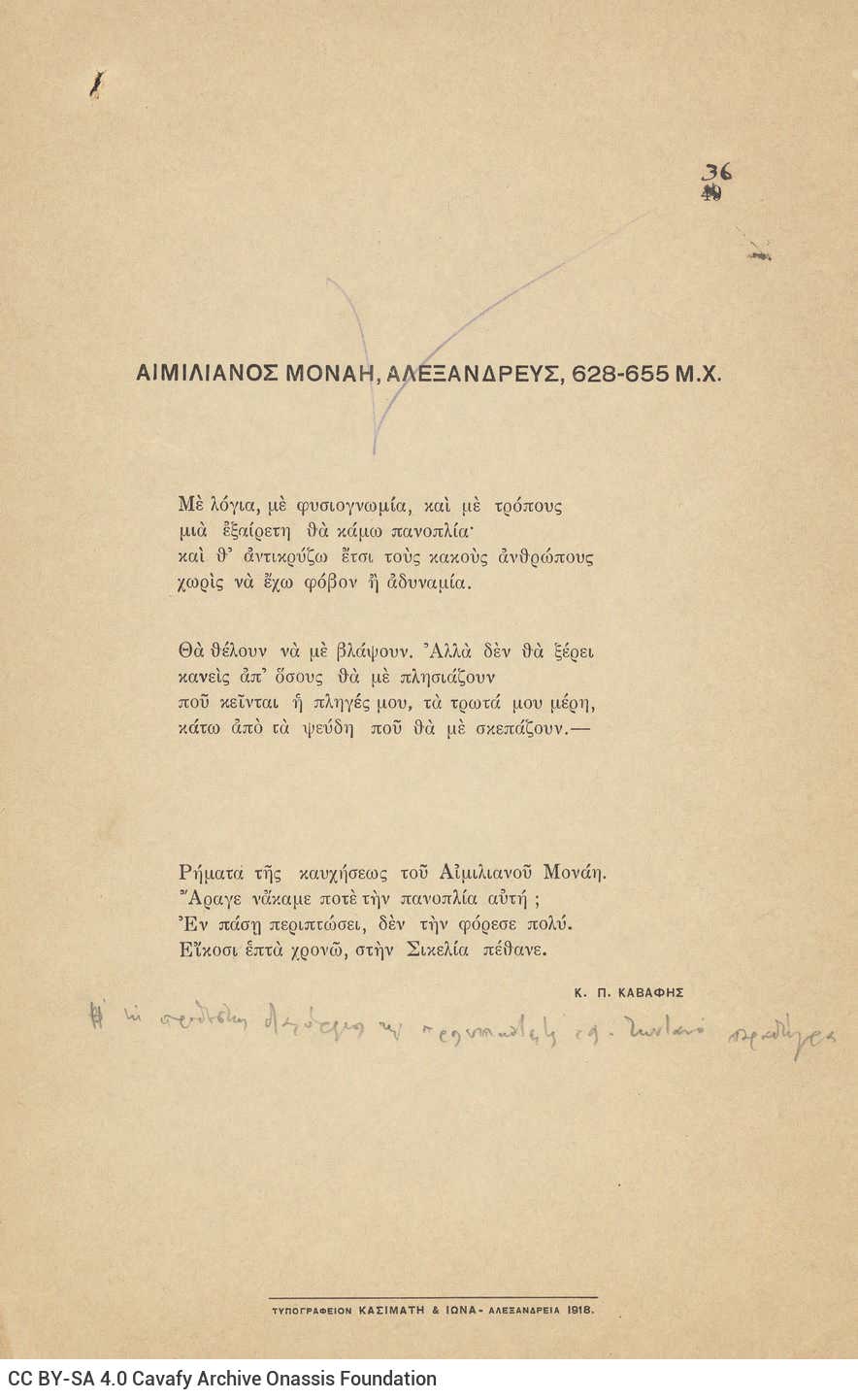 ΑΡΧΕΙΟ ΚΑΒΑΦΗ, Κ. Π.