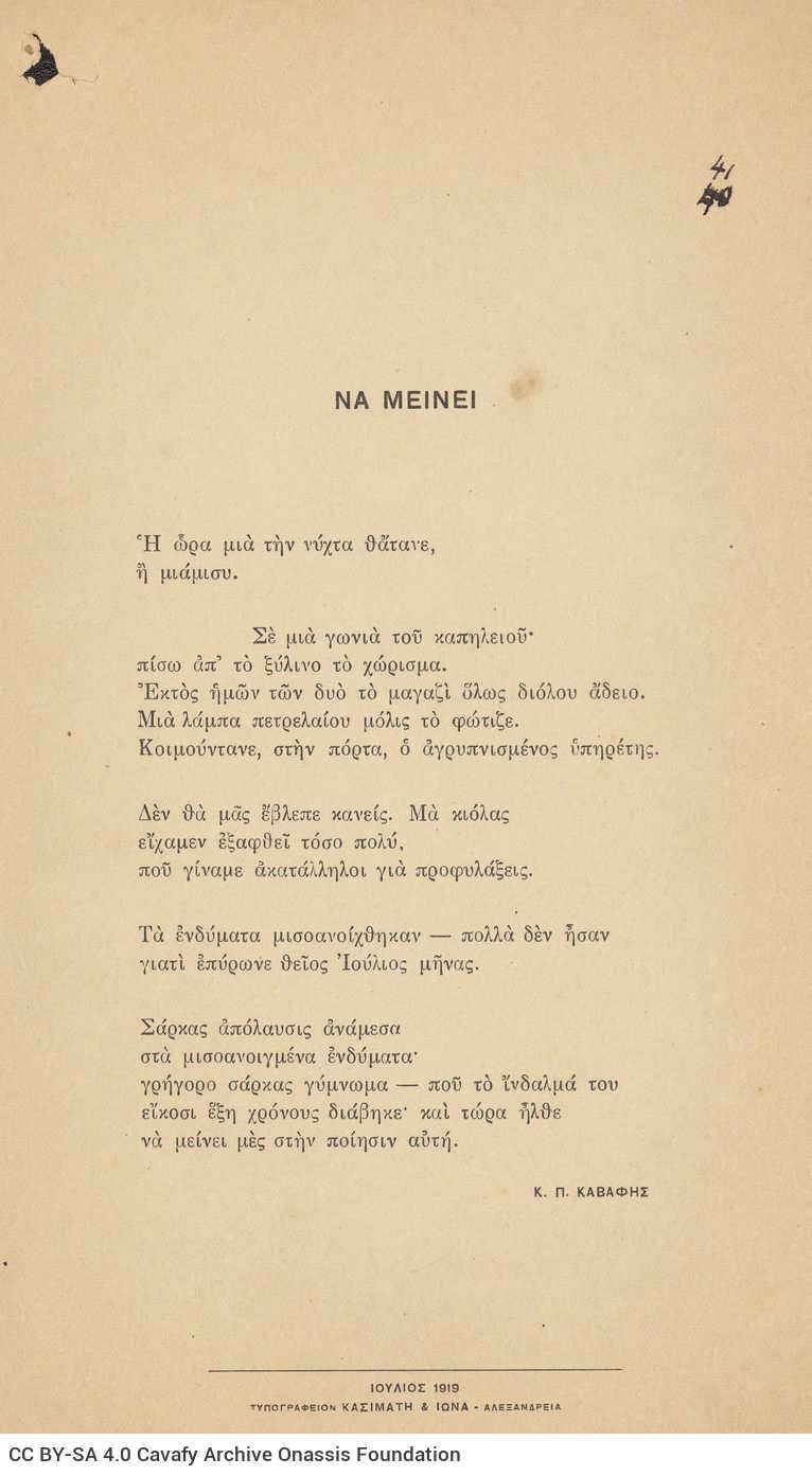 CA - CAVAFY, C. P. FONDS