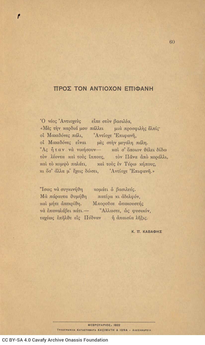 CA - CAVAFY, C. P. FONDS