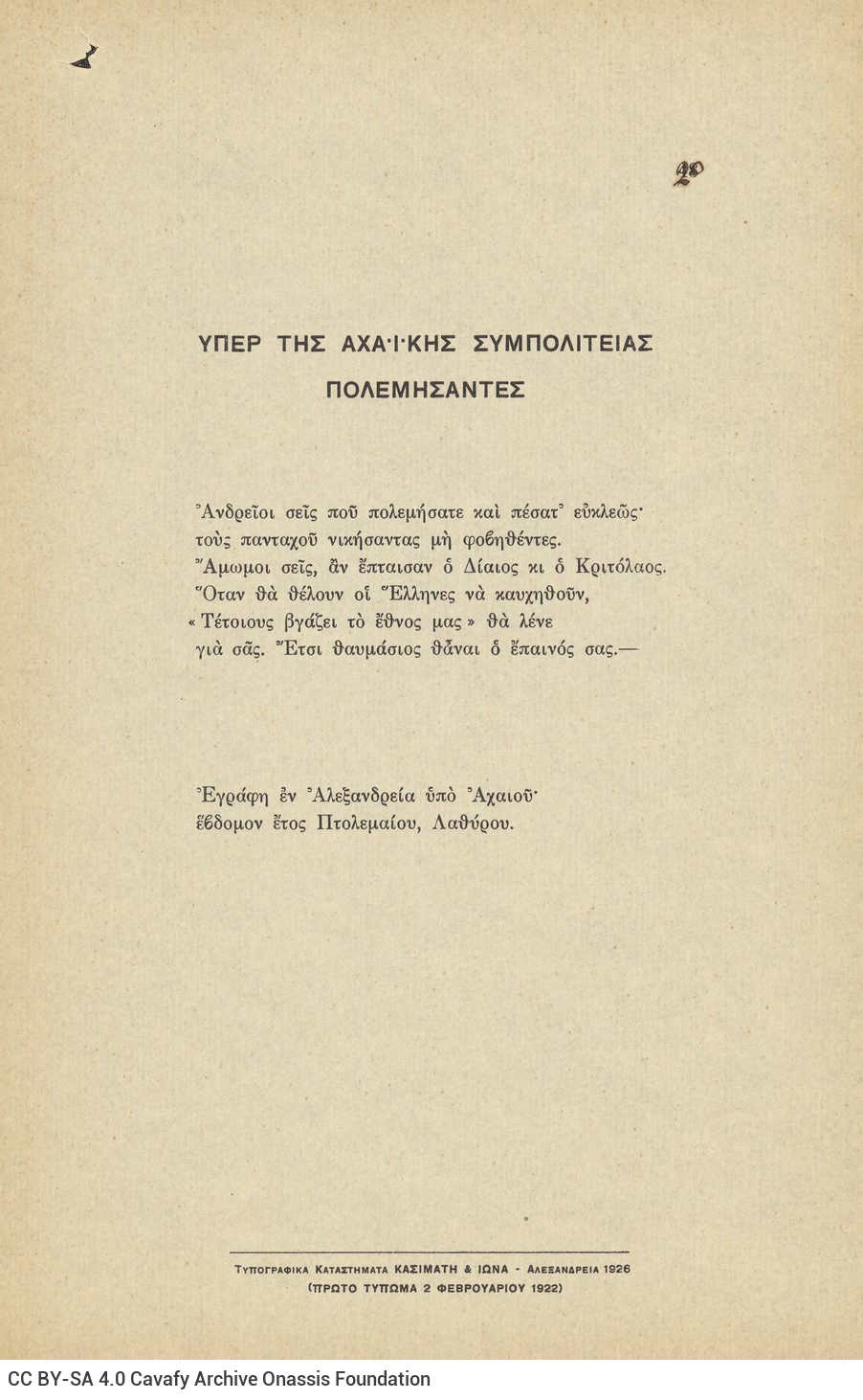 0018 (2079) - "C. P. Cavafy Poems" [1919-1929]