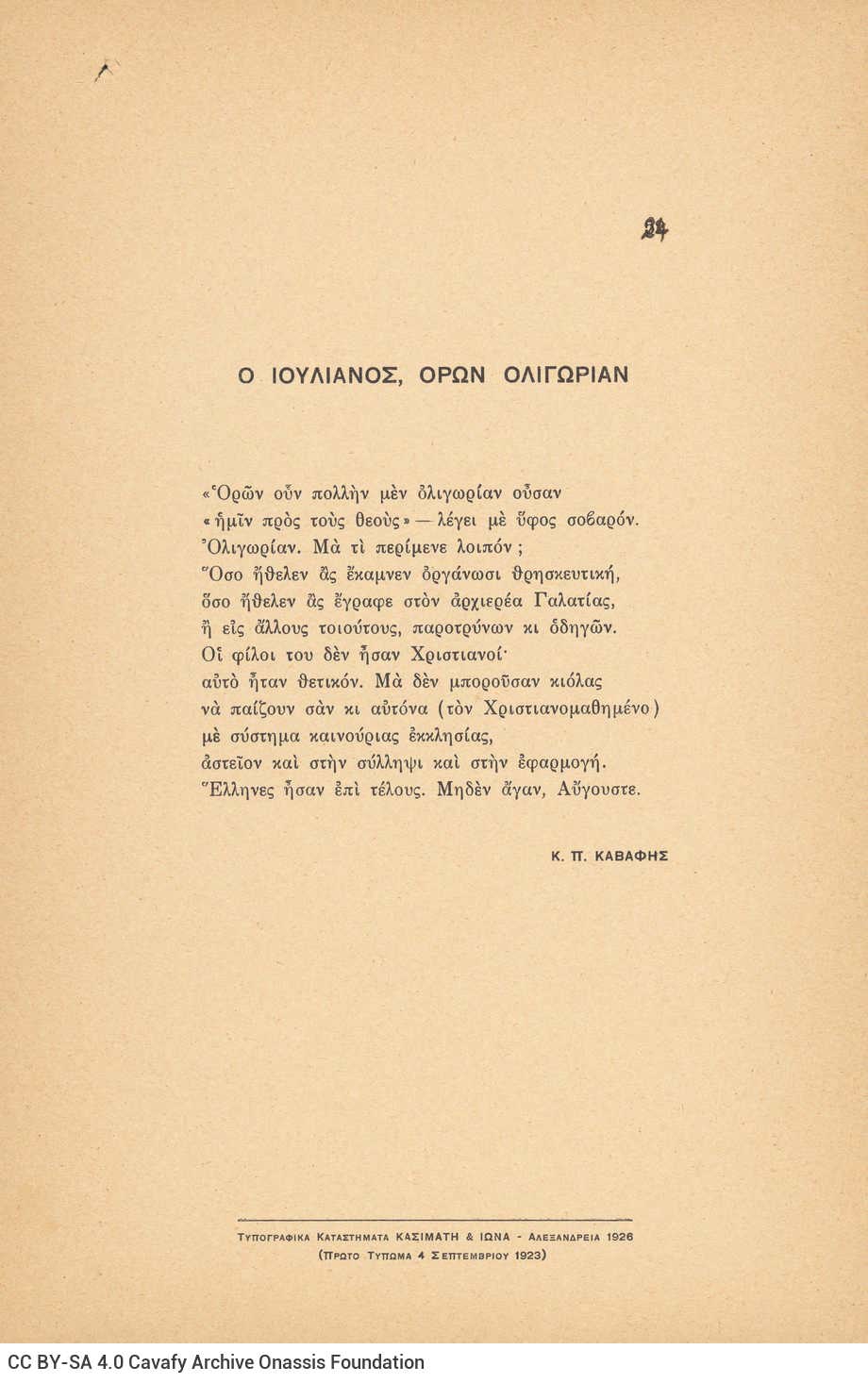 0018 (2079) - "C. P. Cavafy Poems" [1919-1929]