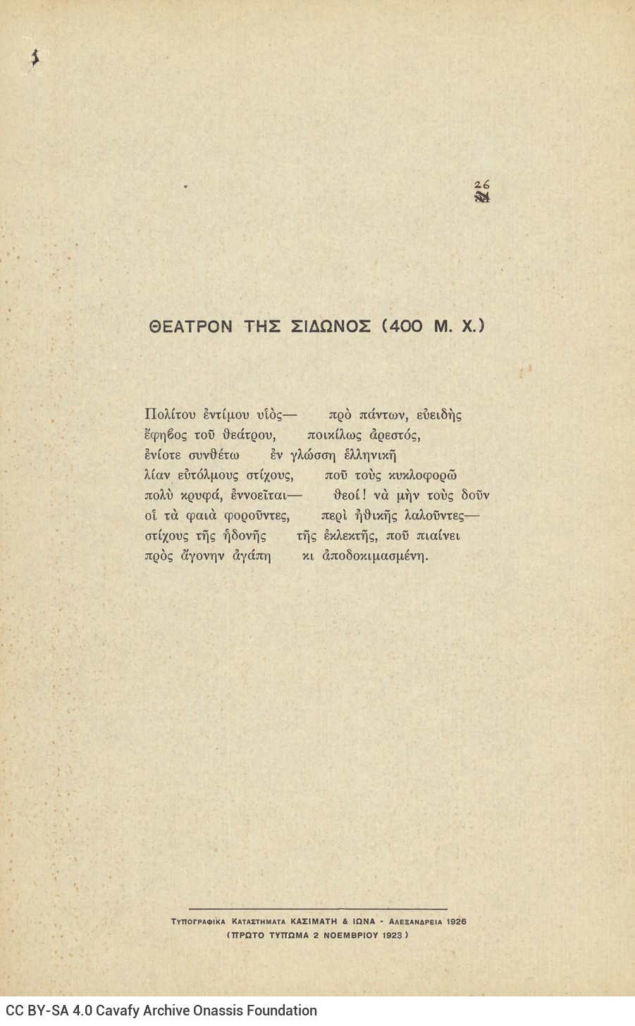 CA - ΑΡΧΕΙΟ ΚΑΒΑΦΗ, Κ. Π.