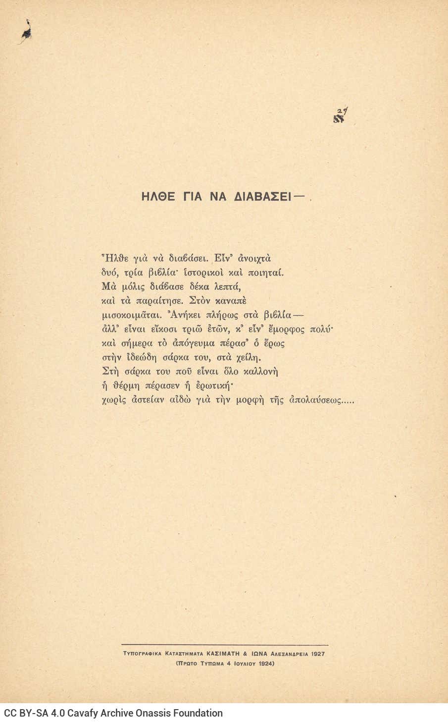 0019 (2080) - "C.P. Cavafy Poems" [1919-1931]