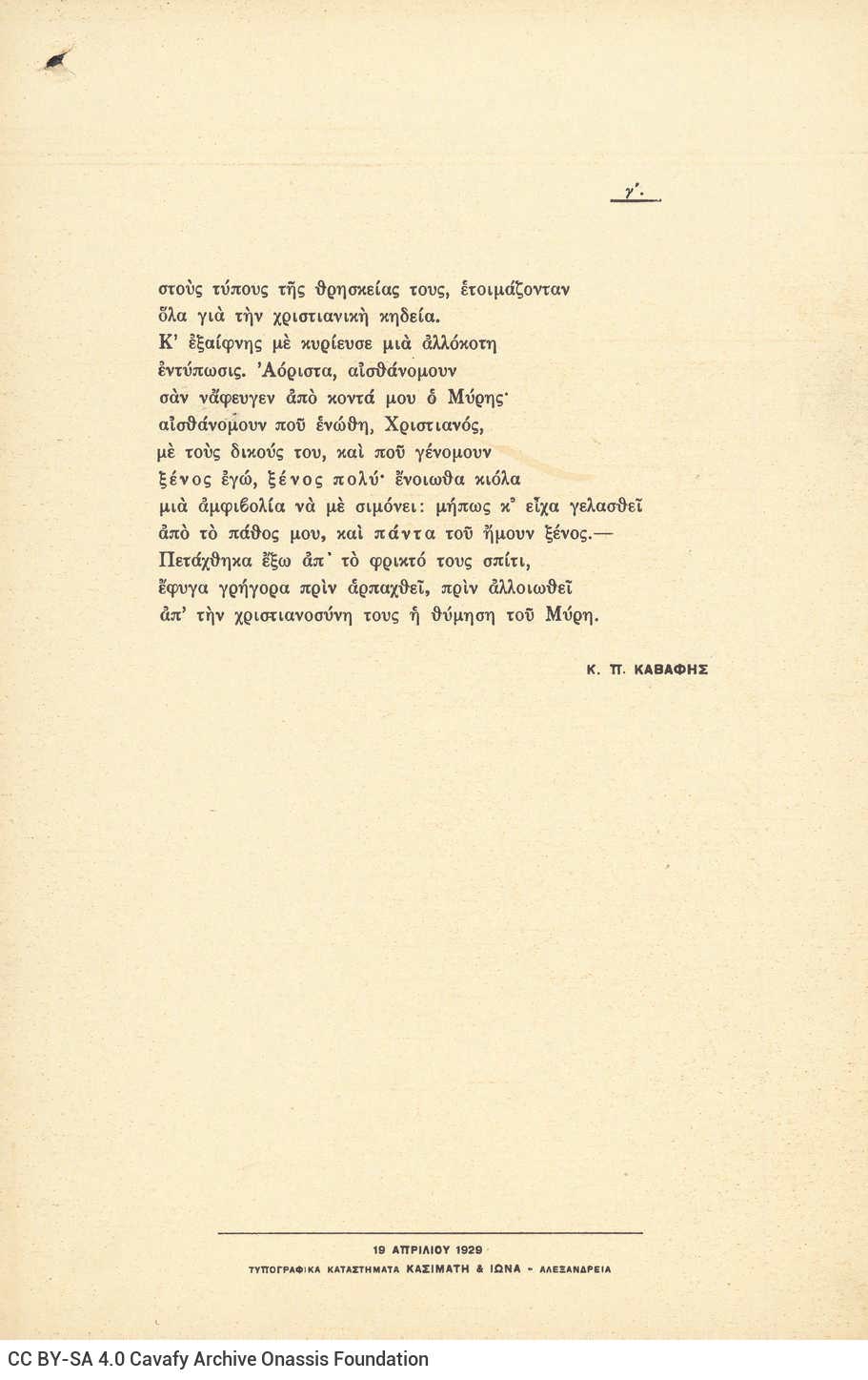 0019 (2080) - "C.P. Cavafy Poems" [1919-1931]