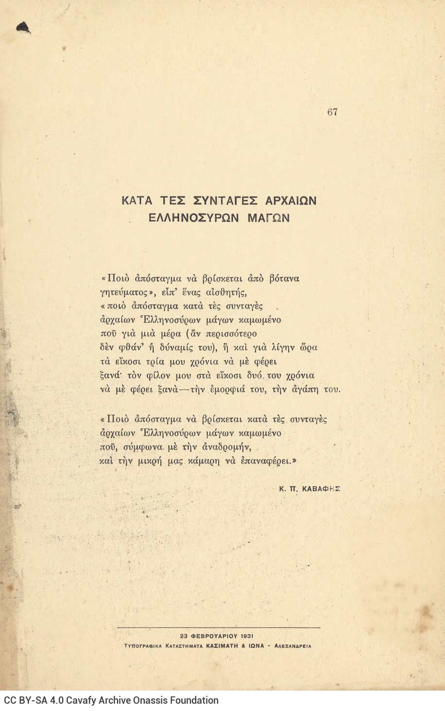 ΑΡΧΕΙΟ ΚΑΒΑΦΗ, Κ. Π.