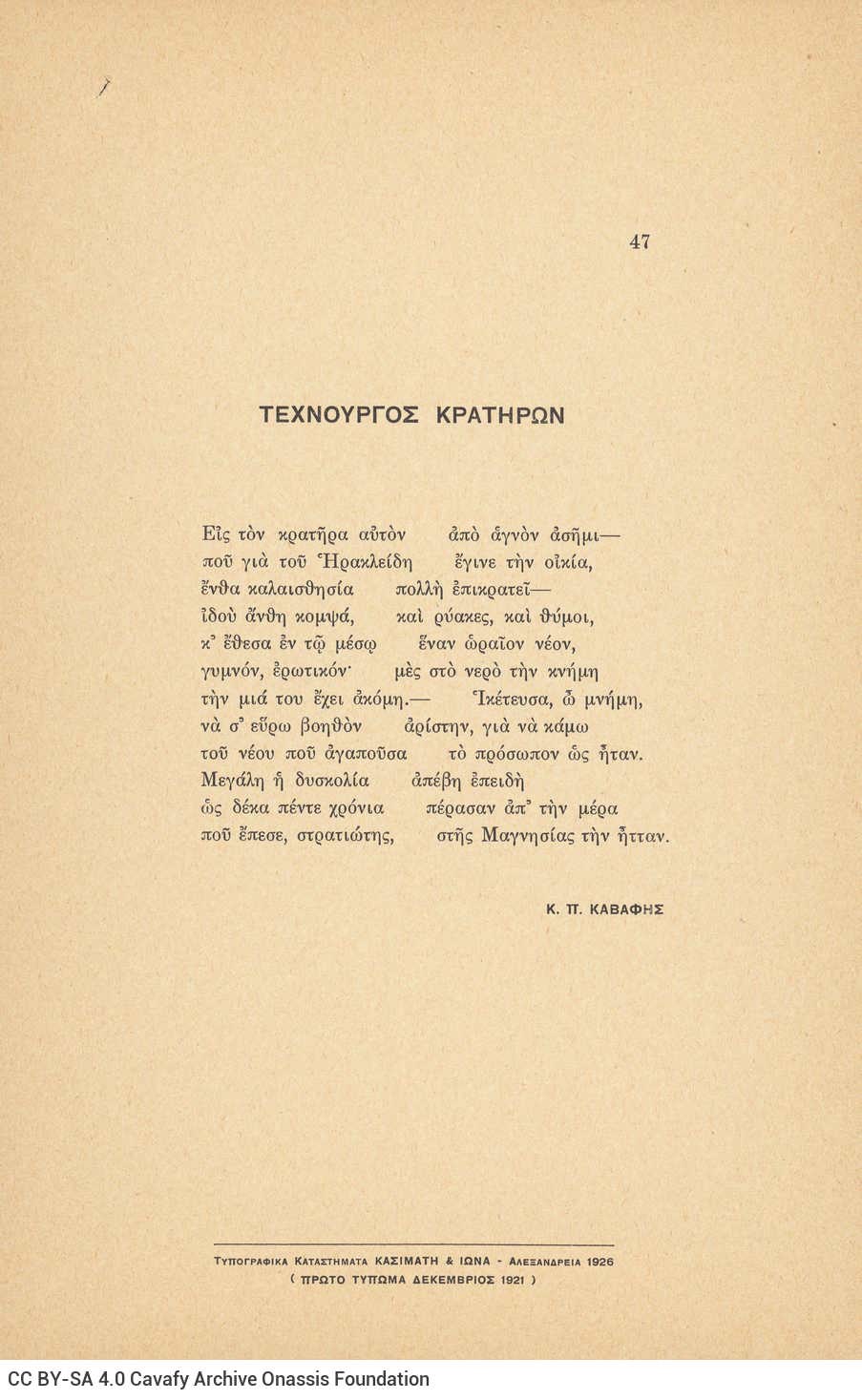 0014 (2081) - "C. P. Cavafy Poems" [1916-1926]