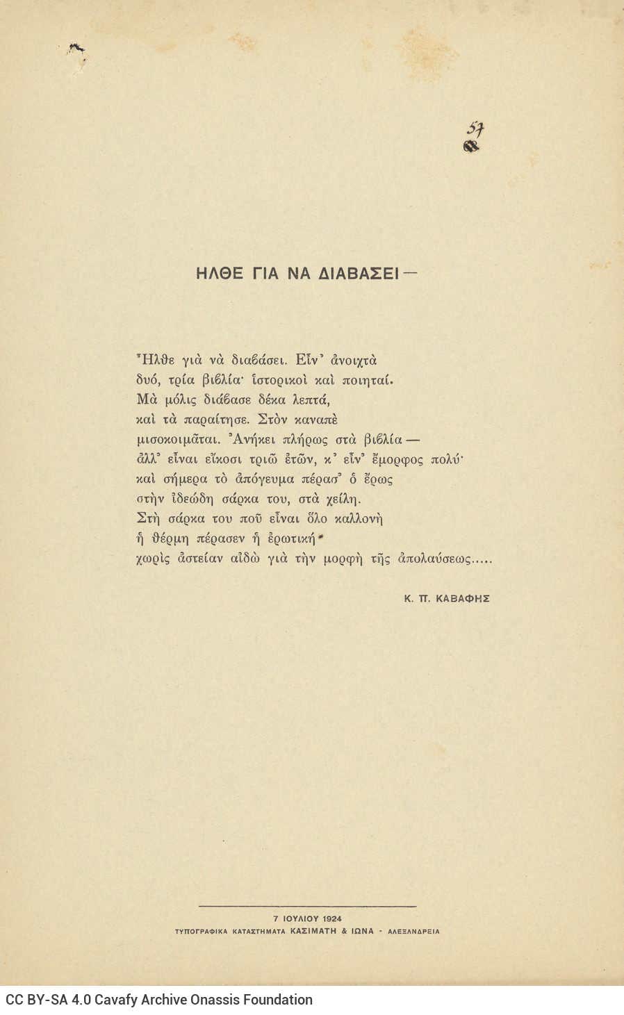 0014 (2081) - "C. P. Cavafy Poems" [1916-1926]