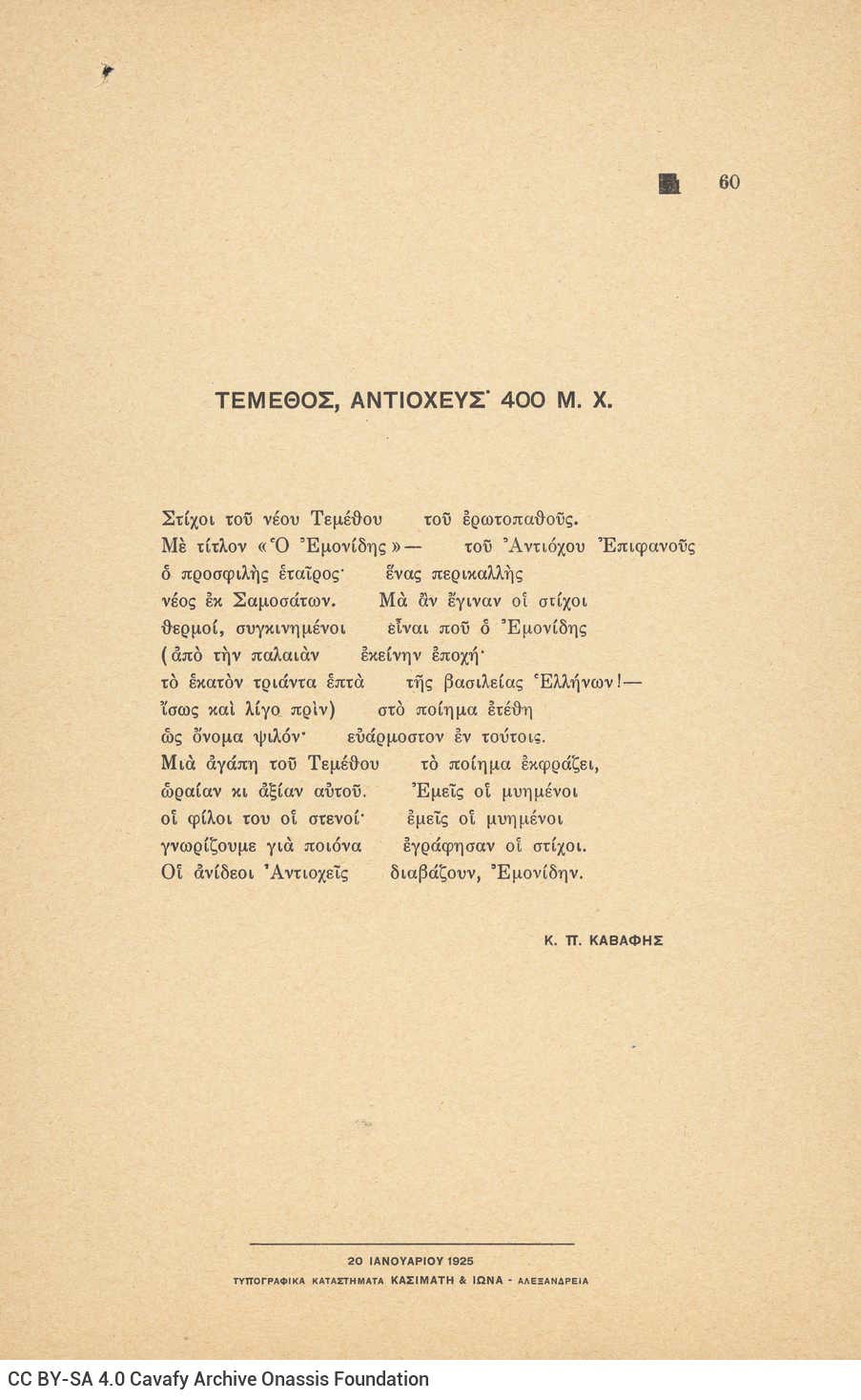 ΑΡΧΕΙΟ ΚΑΒΑΦΗ, Κ. Π.