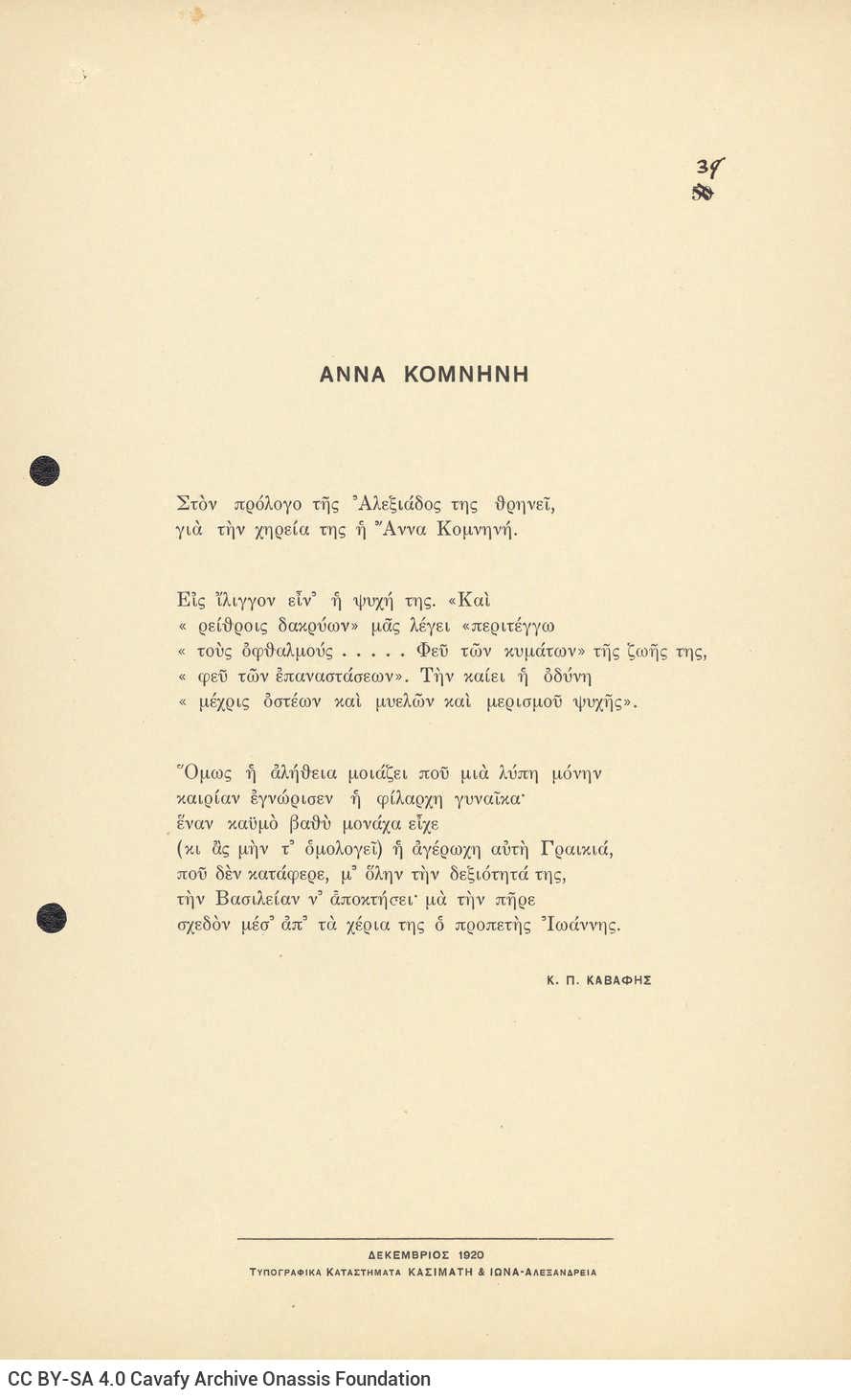 ΑΡΧΕΙΟ ΚΑΒΑΦΗ, Κ. Π.