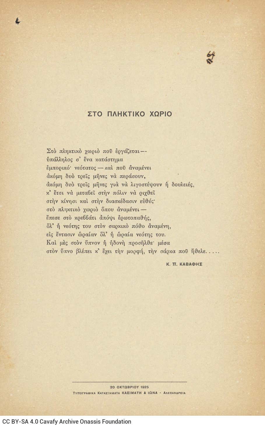 0016 (2083) - "C. P. Cavafy Poems" [1916-1929]"