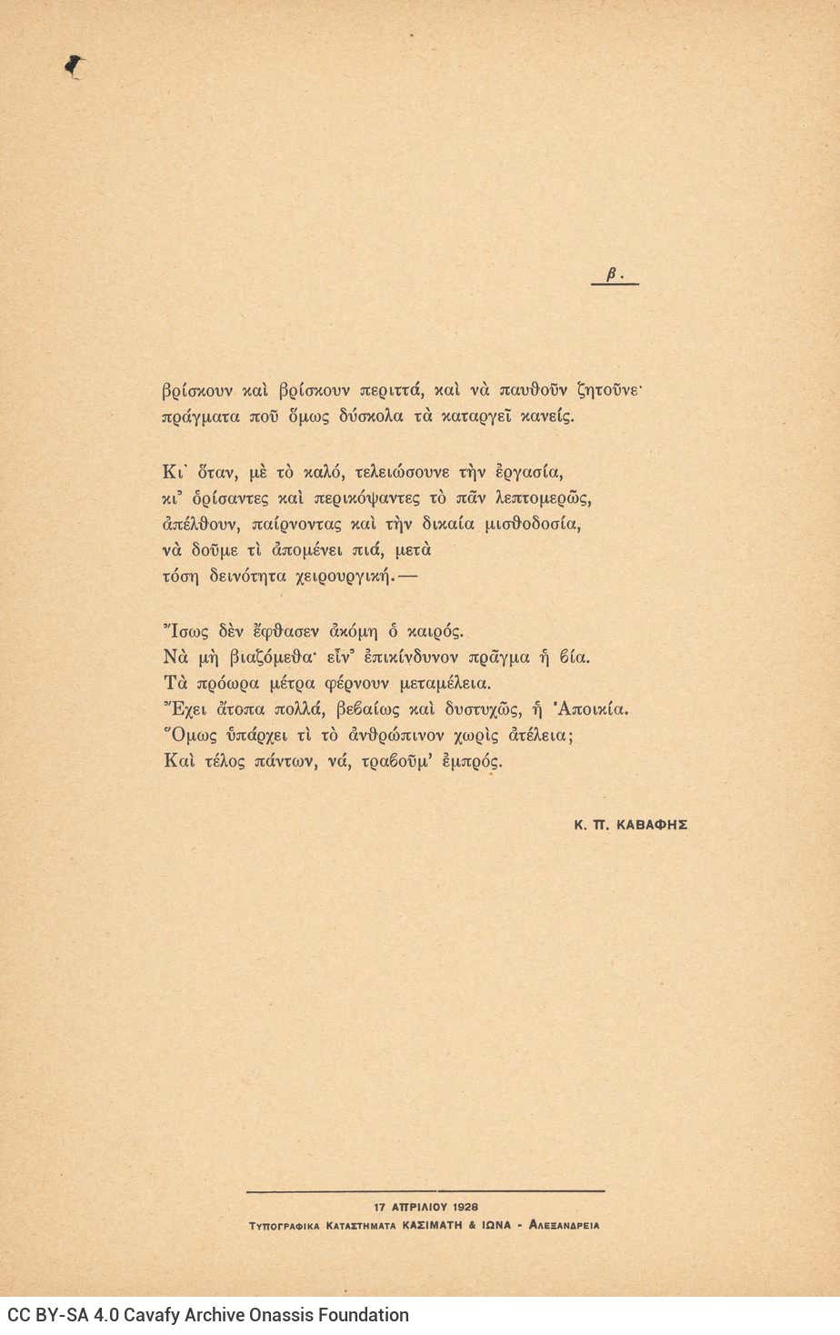 ΑΡΧΕΙΟ ΚΑΒΑΦΗ, Κ. Π.