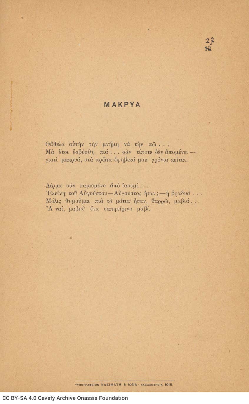 0007 (2087) - "C. P. Cavafy Poems (1908-1914)"