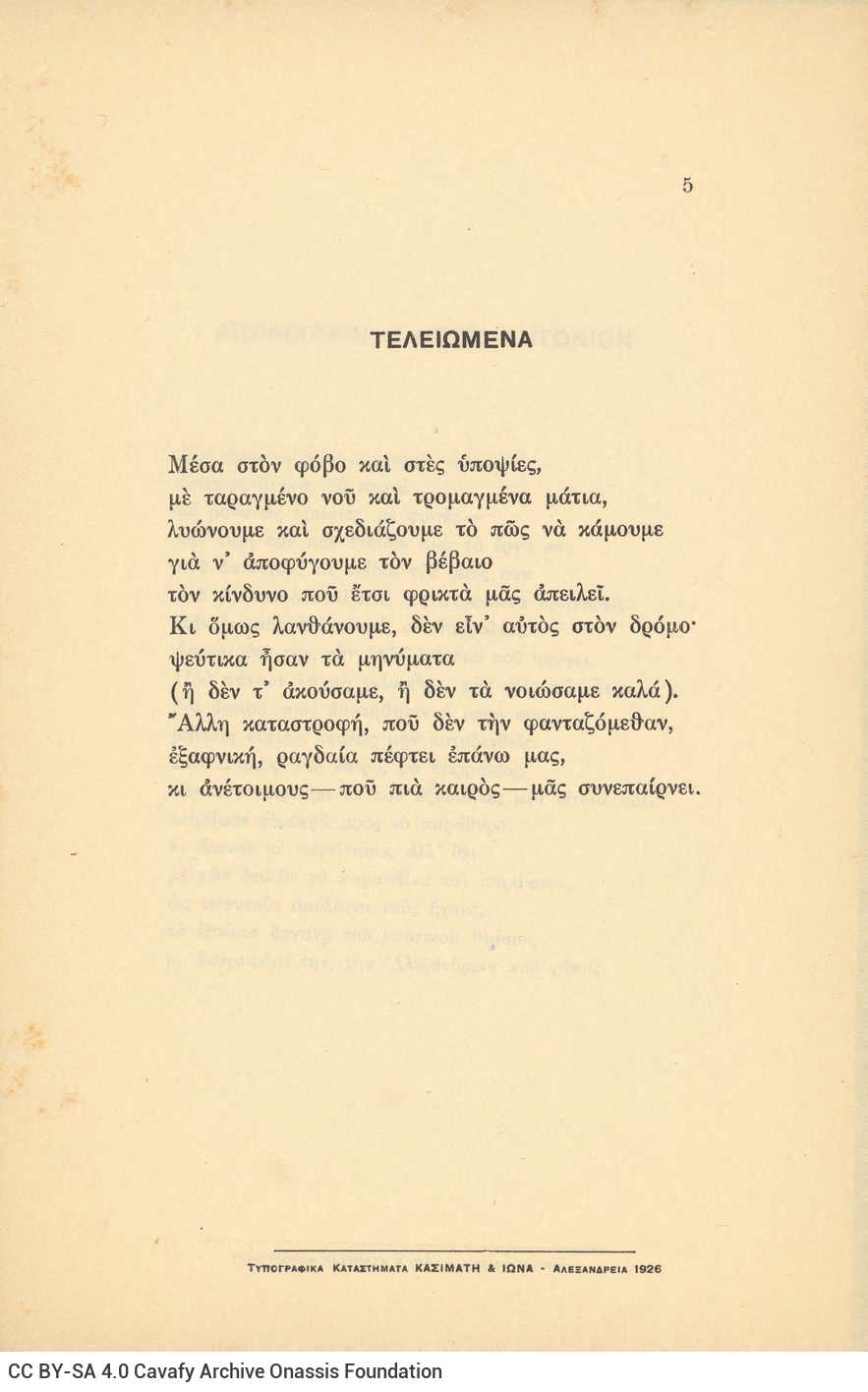 CA - CAVAFY, C. P. FONDS