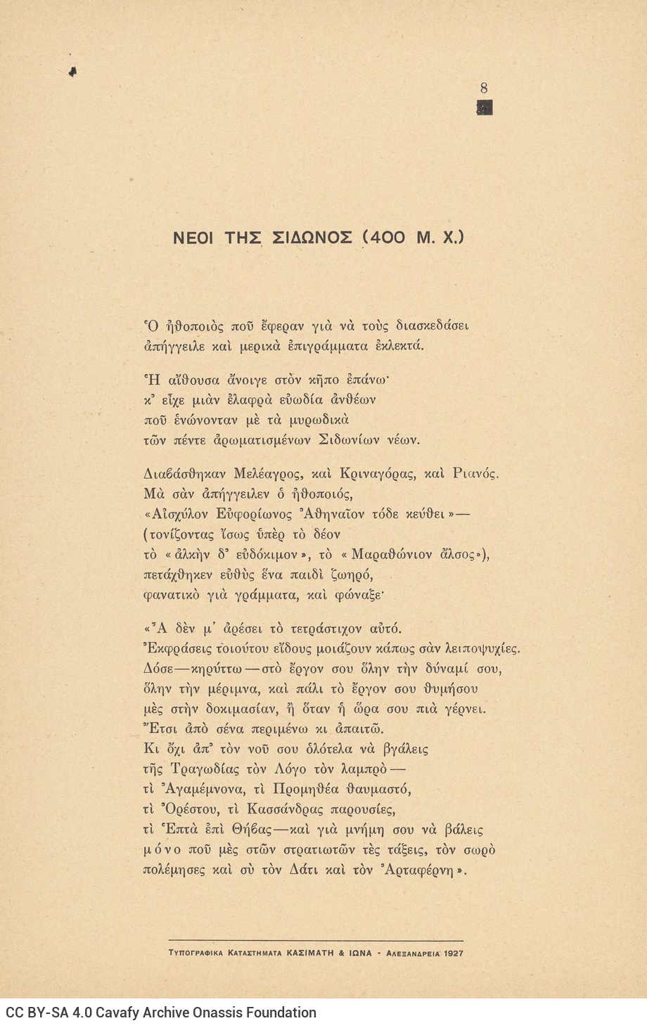 0008 (2102) - «Κ. Π. Καβάφη Ποιήματα»