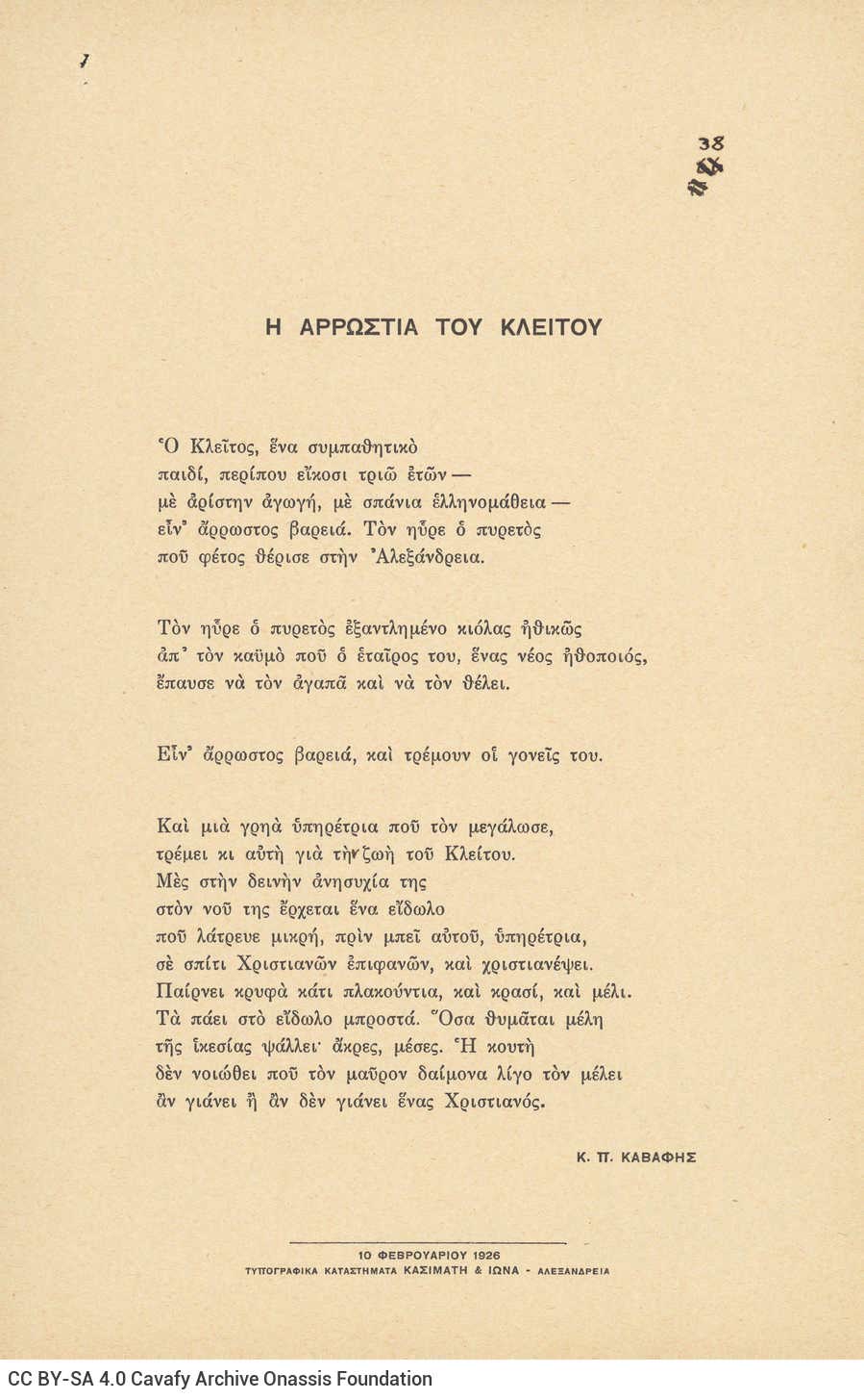 ΑΡΧΕΙΟ ΚΑΒΑΦΗ, Κ. Π.