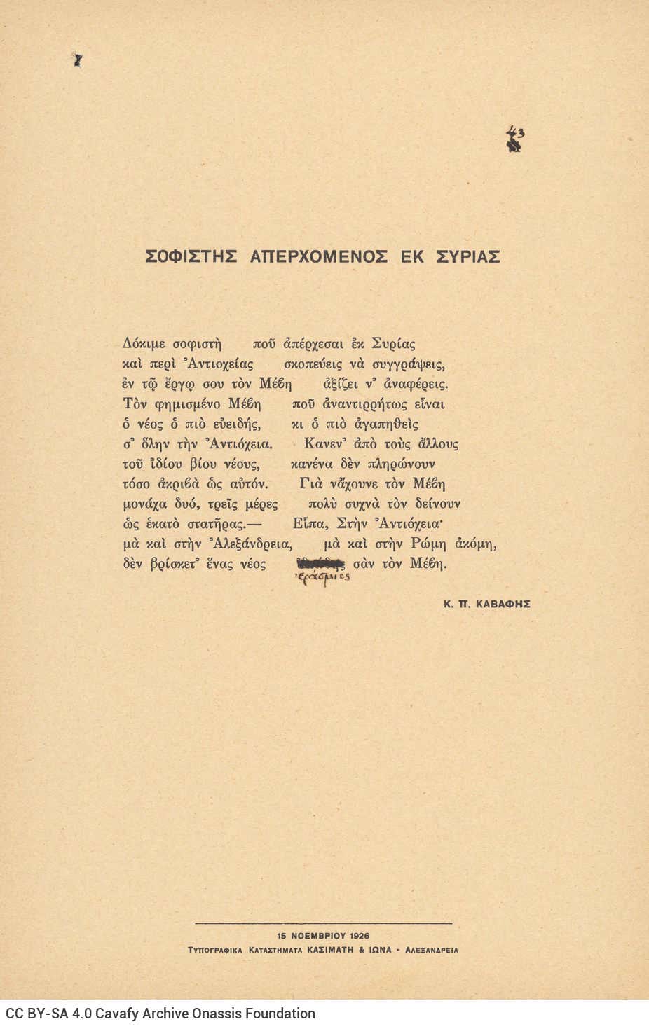 «Κ. Π. Καβάφη Ποιήματα»