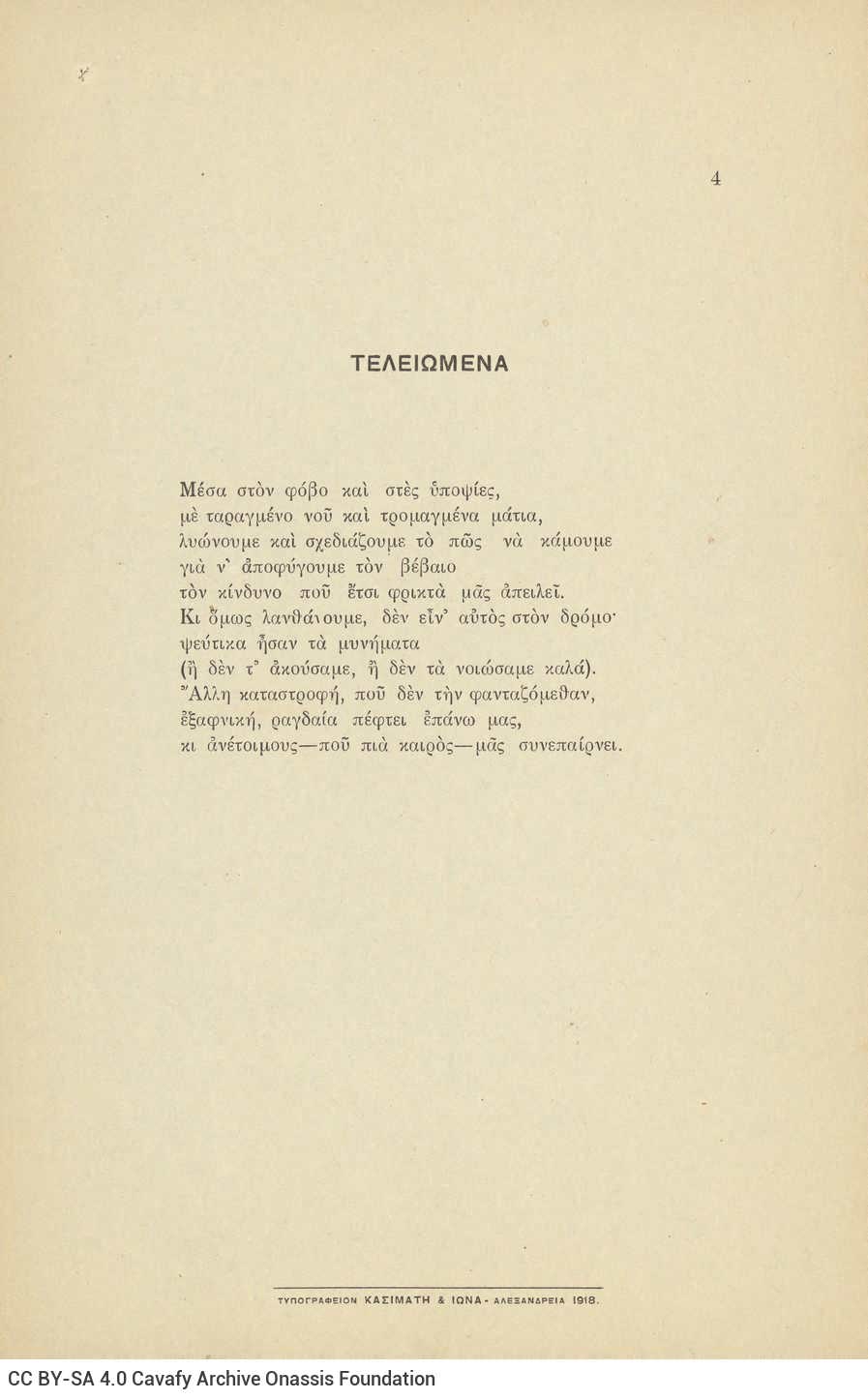 «Κ. Π. Καβάφη Ποιήματα (1908-1914)»