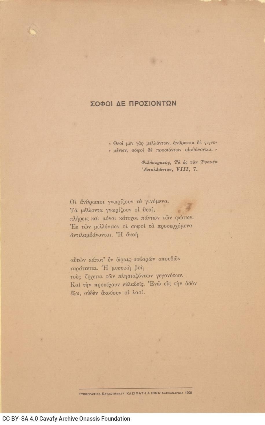 CA - CAVAFY, C. P. FONDS