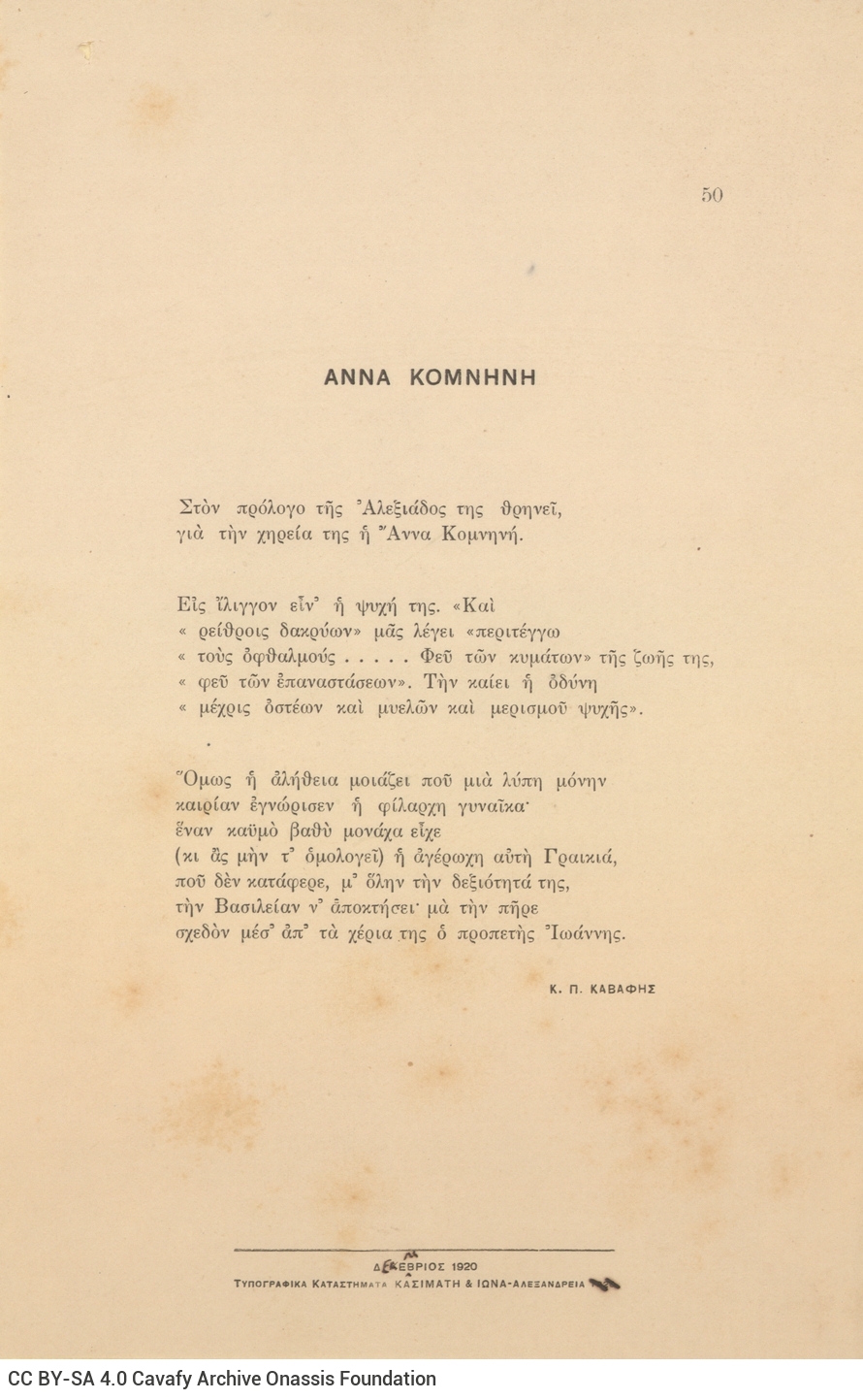 ΑΡΧΕΙΟ ΚΑΒΑΦΗ, Κ. Π.