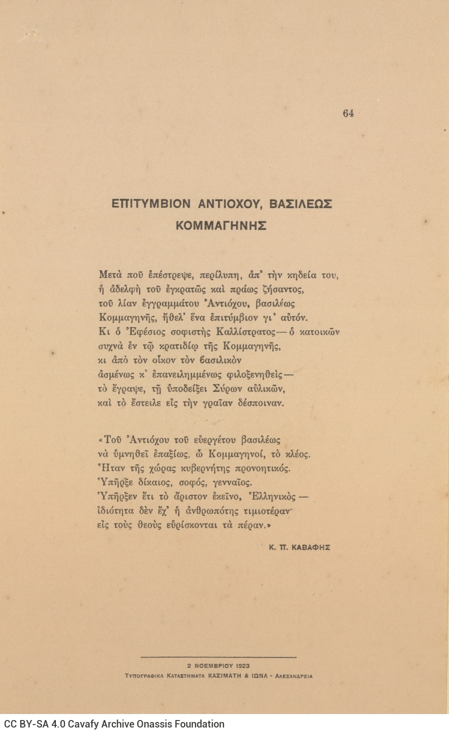ΑΡΧΕΙΟ ΚΑΒΑΦΗ, Κ. Π.