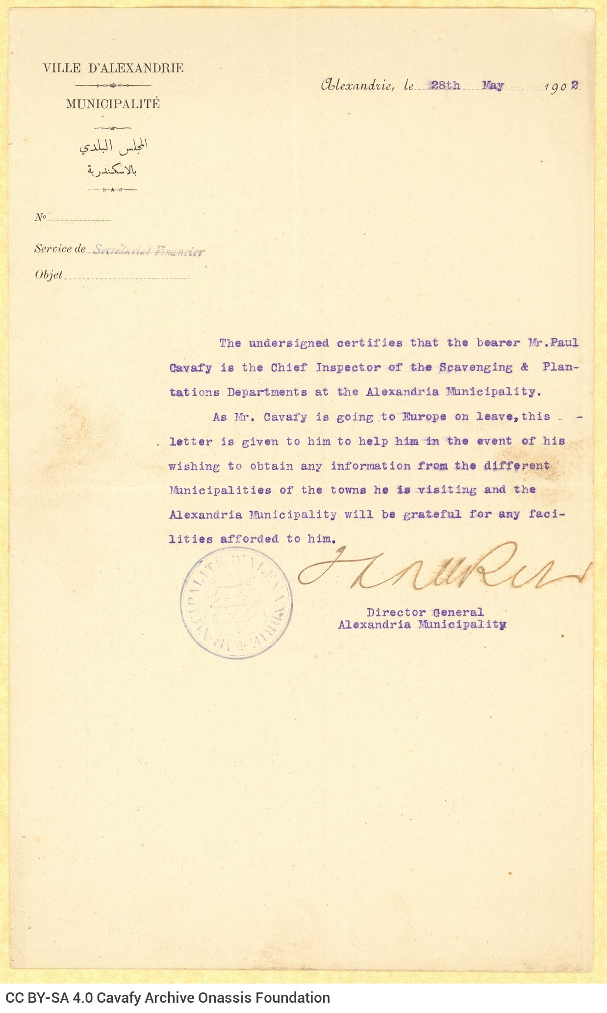| 0004 (1167) | Υπηρεσιακή επιστολή | Τεκμήριο | 28/5/1902 | Προβολή | |