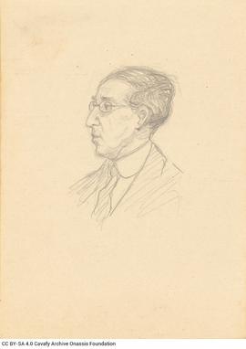 Σκίτσο με μολύβι στη μία όψη χαρτιού, αγνώστου καλλιτέχνη. Το verso κενό. Εικονίζεται η προτομή του Καβάφη, σε κατατομή, στραμμένη προς τα αριστερά.