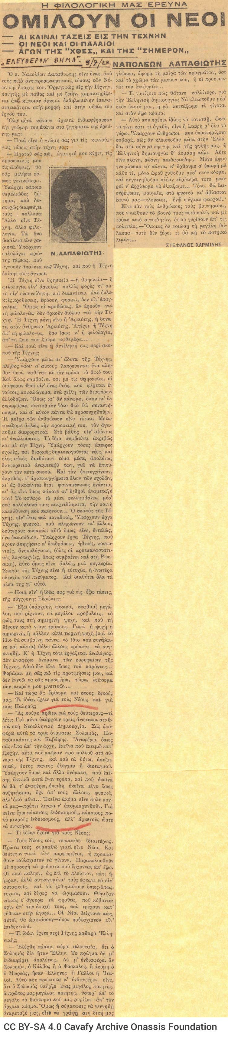 | 0043 (1344) | Απόκομμα Τύπου | Τεκμήριο | 9/7/1923 | Προβολή | |