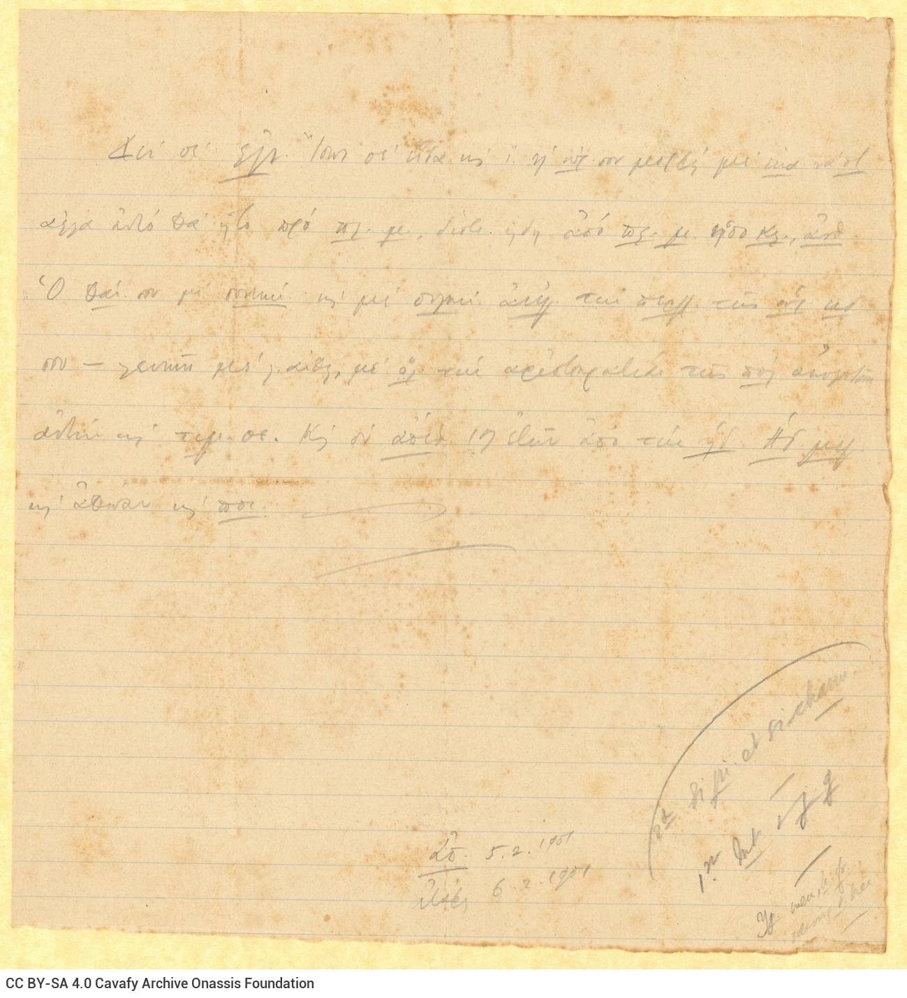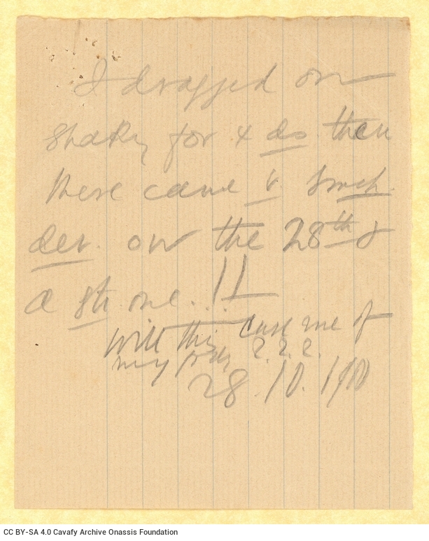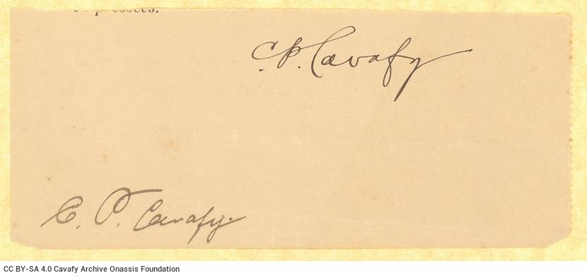 Σχέδια επιστολής του Καβάφη προς τον Α. Σεγκόπουλο