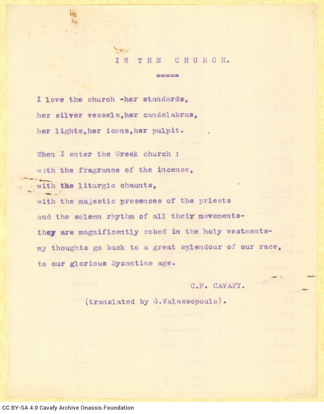 ΑΡΧΕΙΟ ΚΑΒΑΦΗ, Κ. Π.