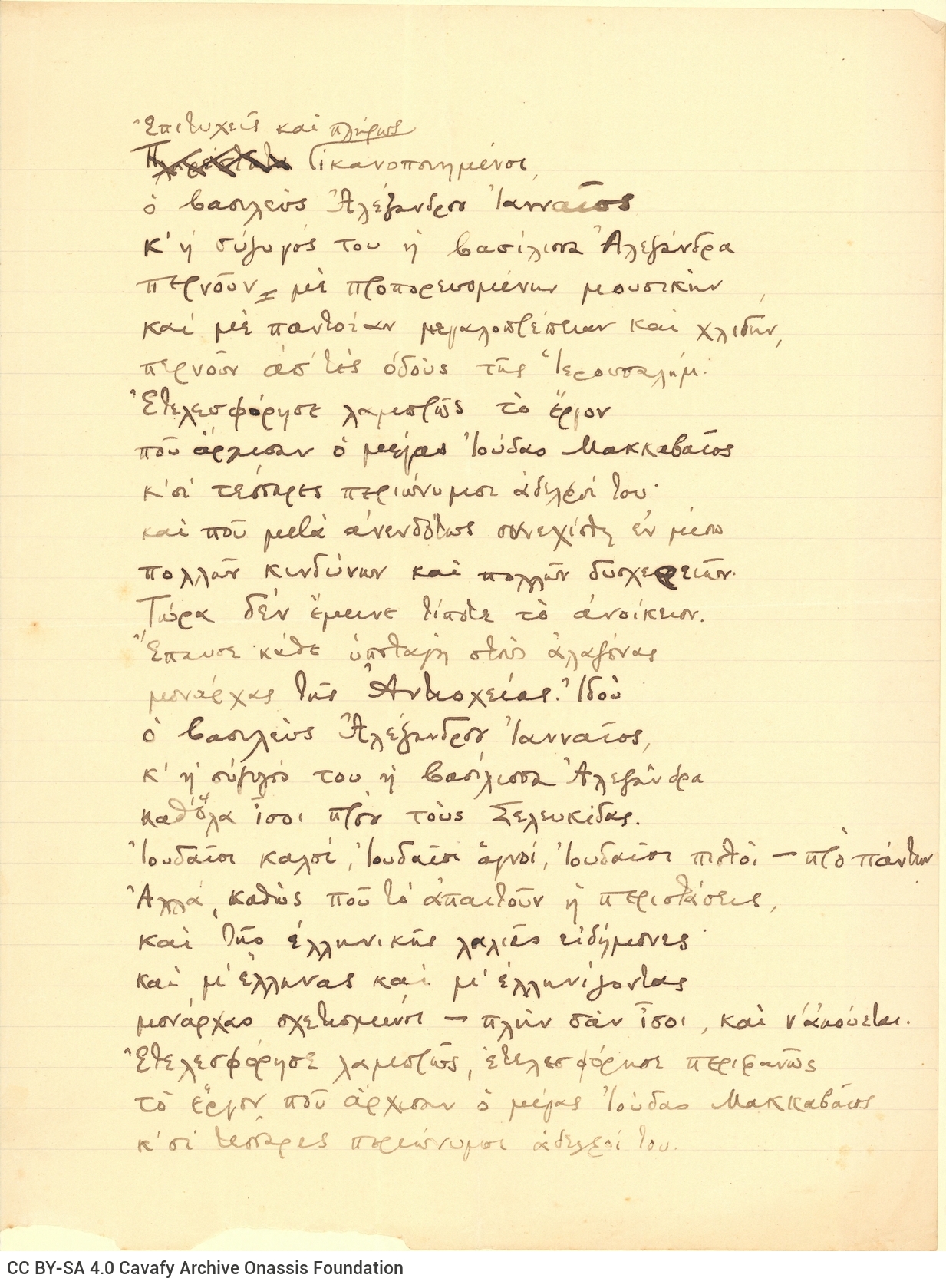 Cavafy, C. P.. “Untitled poem”. Poem (manuscript), n.d.. GR-OF CA CA-SF01-S01-F01-SF001-0059 (21), Onassis Foundation C. P. Cavafy Fonds. From The Digital Collection of the Cavafy Archive, edited by Onassis Foundation, Athens, last modified 01.10.2025. https://doi.org/10.26256/CA-SF01-S01-F01-SF001-0059.