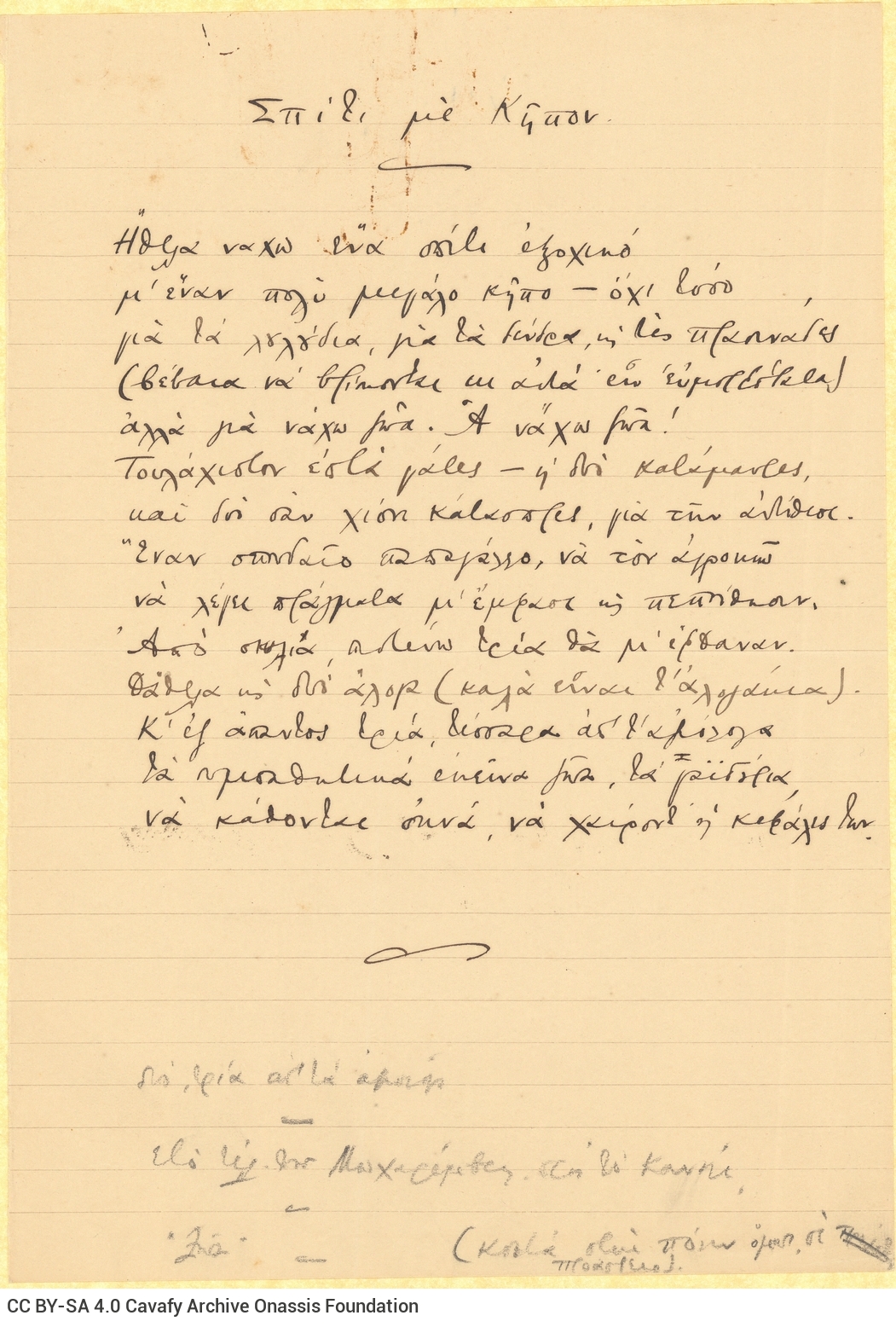 Cavafy, C. P.. “House with Garden”. Poem (manuscript), n.d.. GR-OF CA CA-SF01-S01-F01-SF001-0110 (117), Onassis Foundation C. P. Cavafy Fonds. From The Digital Collection of the Cavafy Archive, edited by Onassis Foundation, Athens, last modified 01.10.2025. https://doi.org/10.26256/CA-SF01-S01-F01-SF001-0110.
