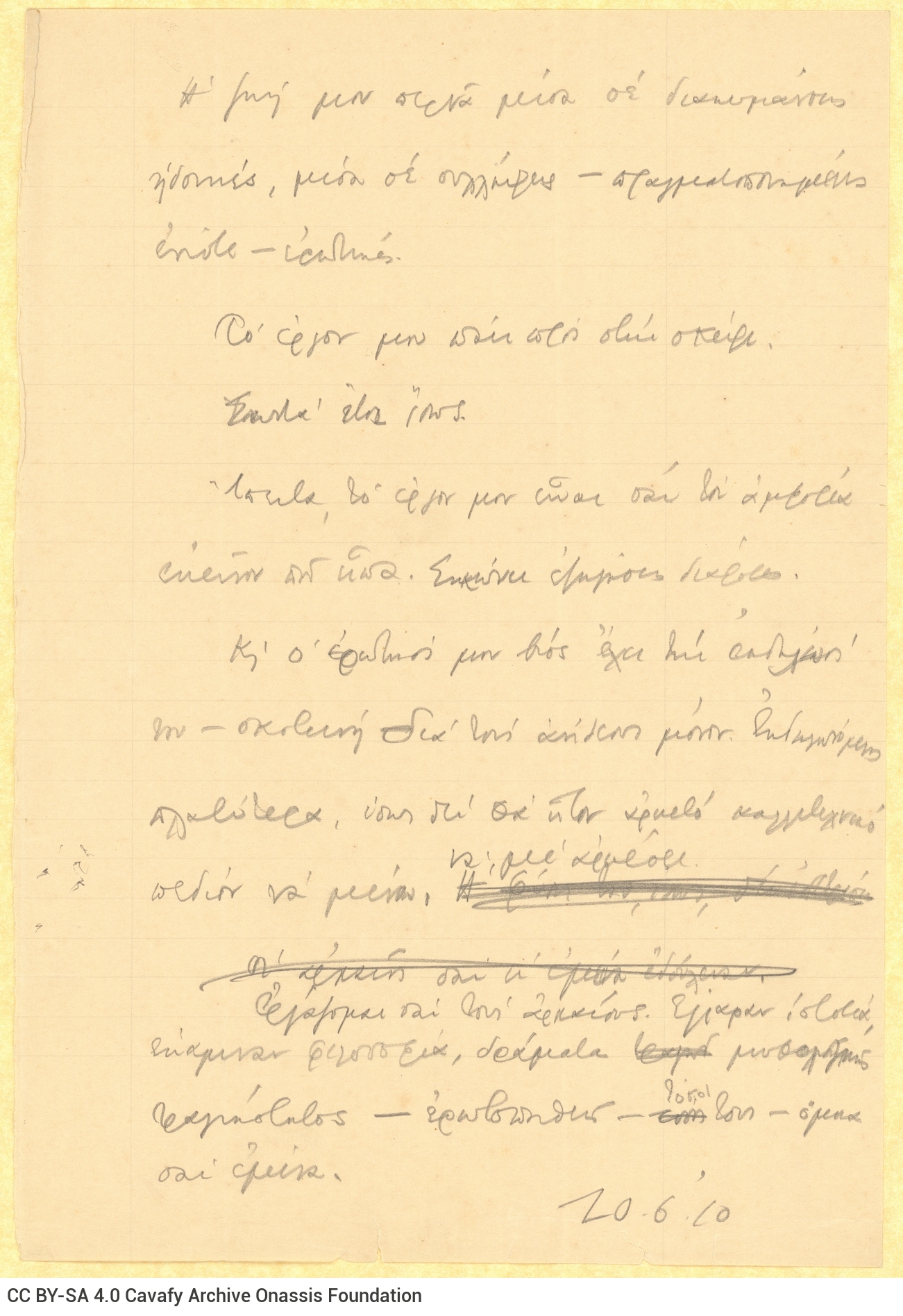 Cavafy, C. P.. “Note by Cavafy”. Notes (handwritten), 20.06.1910. GR-OF CA CA-SF01-S03-F09-0019 (210), Onassis Foundation C. P. Cavafy Fonds. From The Digital Collection of the Cavafy Archive, edited by Onassis Foundation, Athens, last modified 01.10.2025. https://doi.org/10.26256/CA-SF01-S03-F09-0019.