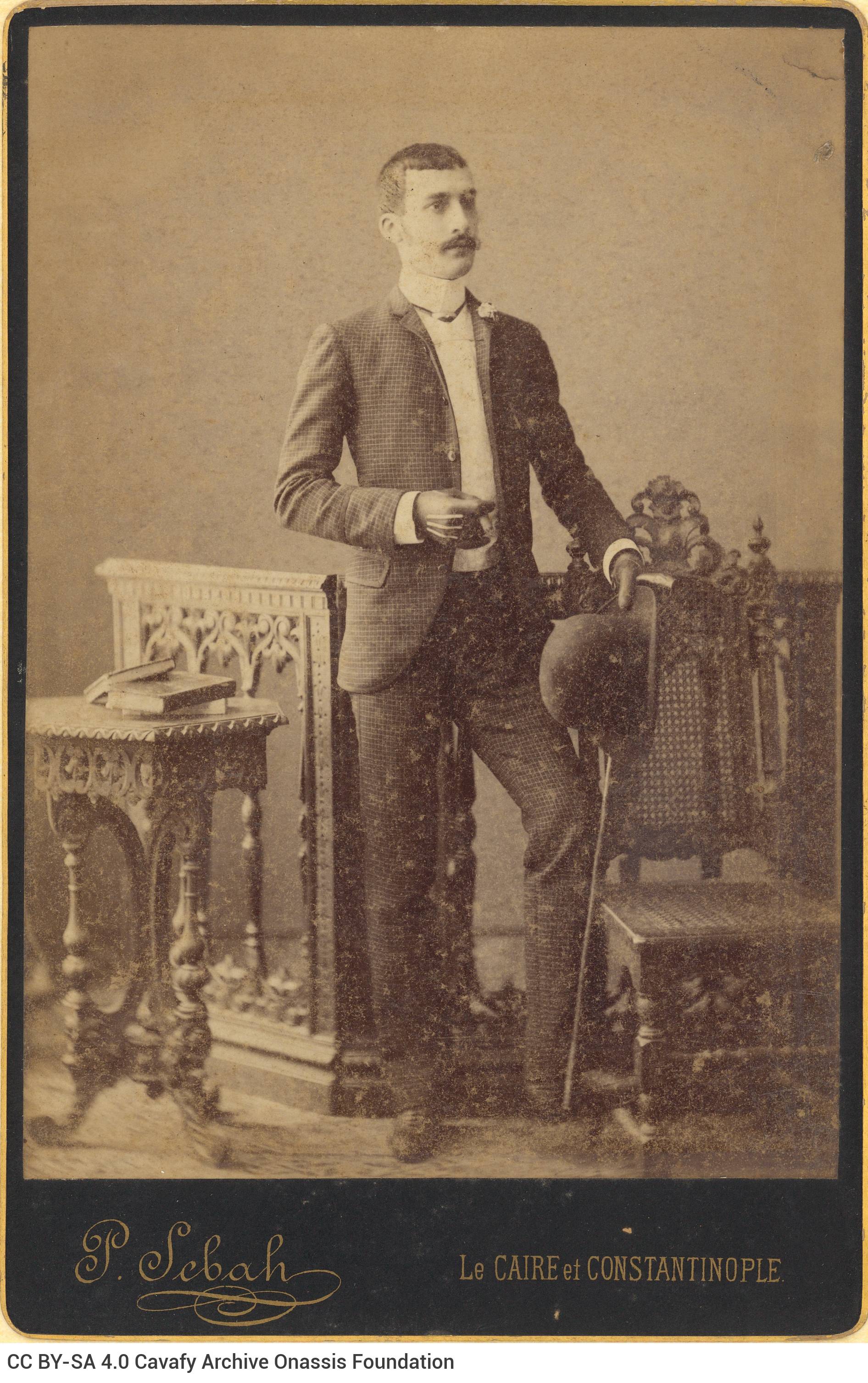 Sébah, P.. “Photograph of a man”. Photograph, n.d.. GR-OF CA CA-SF02-S03-F26-SF003-0030 (1983), Onassis Foundation C. P. Cavafy Fonds. From The Digital Collection of the Cavafy Archive, edited by Onassis Foundation, Athens, last modified 01.10.2025. https://doi.org/10.26256/CA-SF02-S03-F26-SF003-0030.